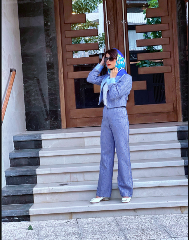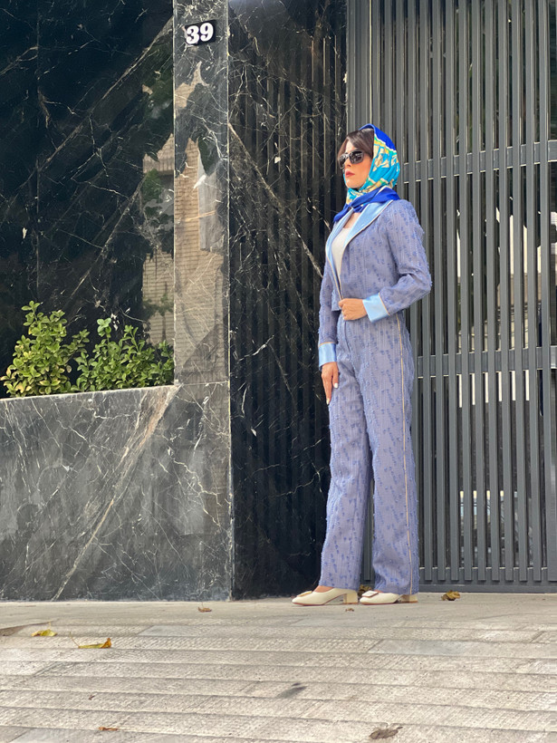 کت و شلوار اورگانزا لایه کوبی شده کامل ترکیبی از پارچه های اورگانزا و ساتن ابی مناسب برای سایز ۳۶ تا ۳۸: تک سایز